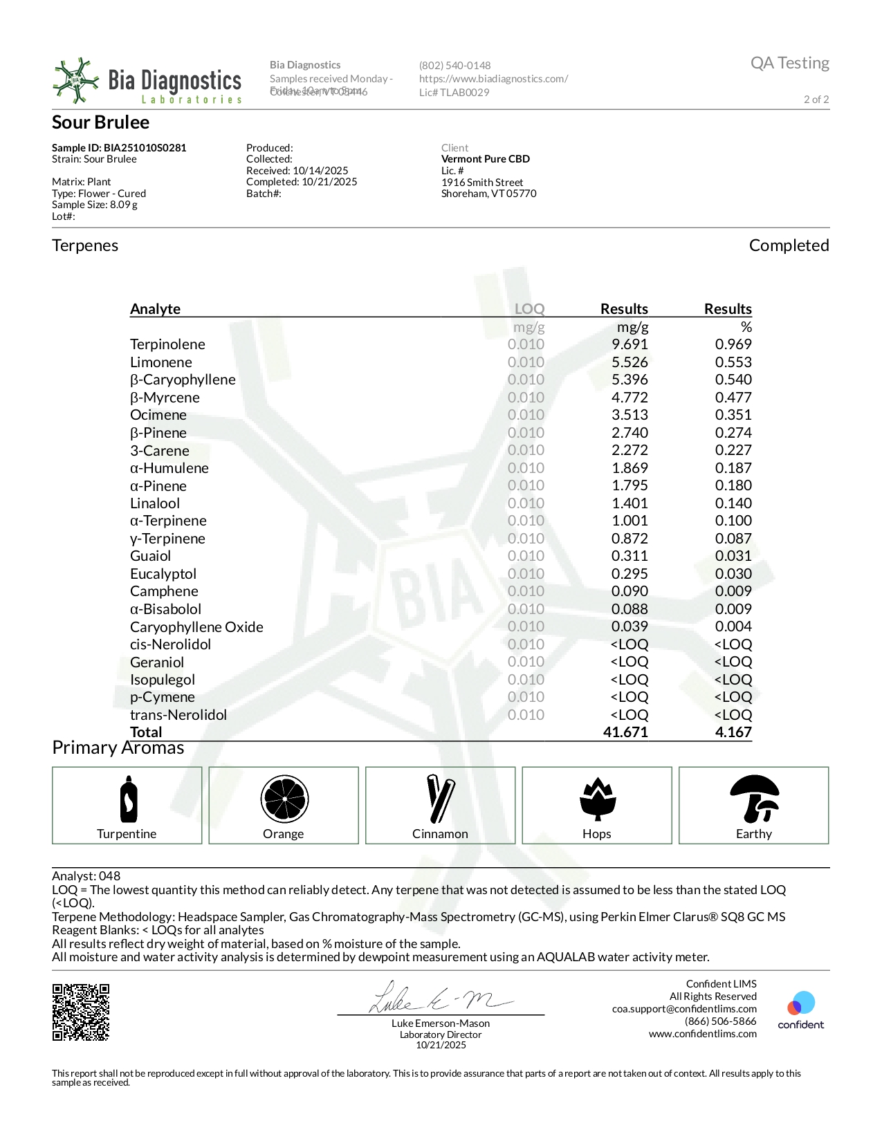 Dominant Terpenes: Terpinolene, Limonene, Caryophyllene, Myrcene, Ocimene